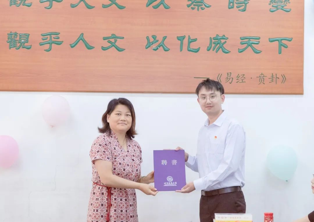 朱俊玲向毕业班班长颁发“校友联络人”聘书